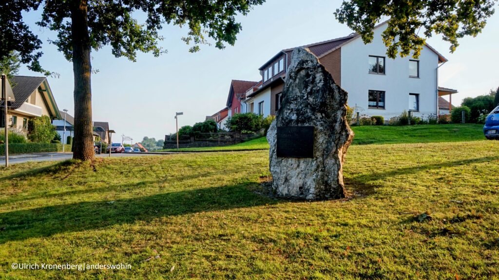 Wir sind wenige Kilometer nördlich des Seeburger See, nahe dem Ort Ebergötzen. Das kleine Dorf bietet wenig Sehenswertes, wäre da nicht ein Stein mitten im Dorf. Wie ein Denkmal steht dieser Fels da und markiert den geodätischen Mittelpunkt Deutschlands.