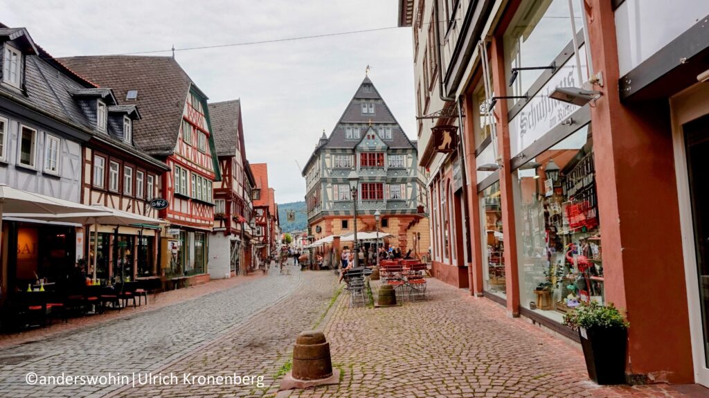 Der Höhepunkt eines Altstadtrundgangs ist der ansteigende Marktplatz unterhalb der Mildenburg. Prächtige Fachwerkhäuser stehen hier. Früher diente der Marktplatz öfter als Kinofilmkulisse. „Ännchen von Tharau“ wurde hier gedreht und die Eröffnungsszenen von „Das Wirtshaus im Spessart“ sowie „Das Spukschloss im Spessart“. Das ist fast 70 Jahre her. Inzwischen sind beide Kinofilme deutsche Kultfilme.
